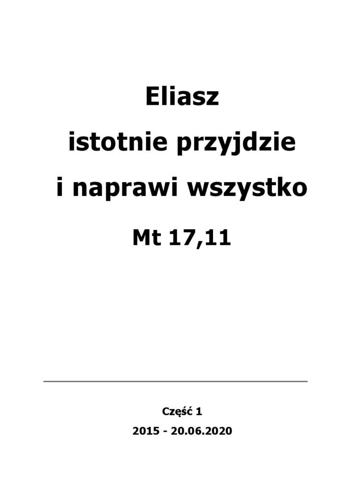 1 cz. Eliasz istotnie przyjdzie i naprawi wszystko Mt 17.11