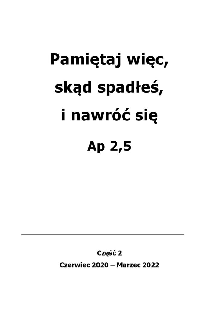 2 cz. Pamiętaj więc, skąd spadłeś, i nawróć się Ap 2,5