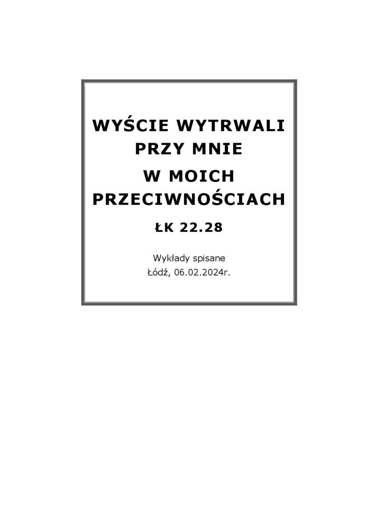 WYŚCIE WYTRWALI PRZY MNIE W MOICH PRZECIWNOŚCIACH ŁK 22.28 – Łódź, 06.02.2024r.