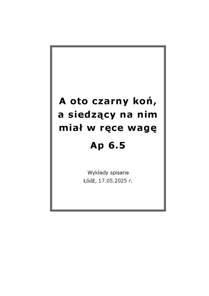 Ap 6:5: „A oto czarny koń, a siedzący na nim miał w ręce wagę.” Ap 6.5