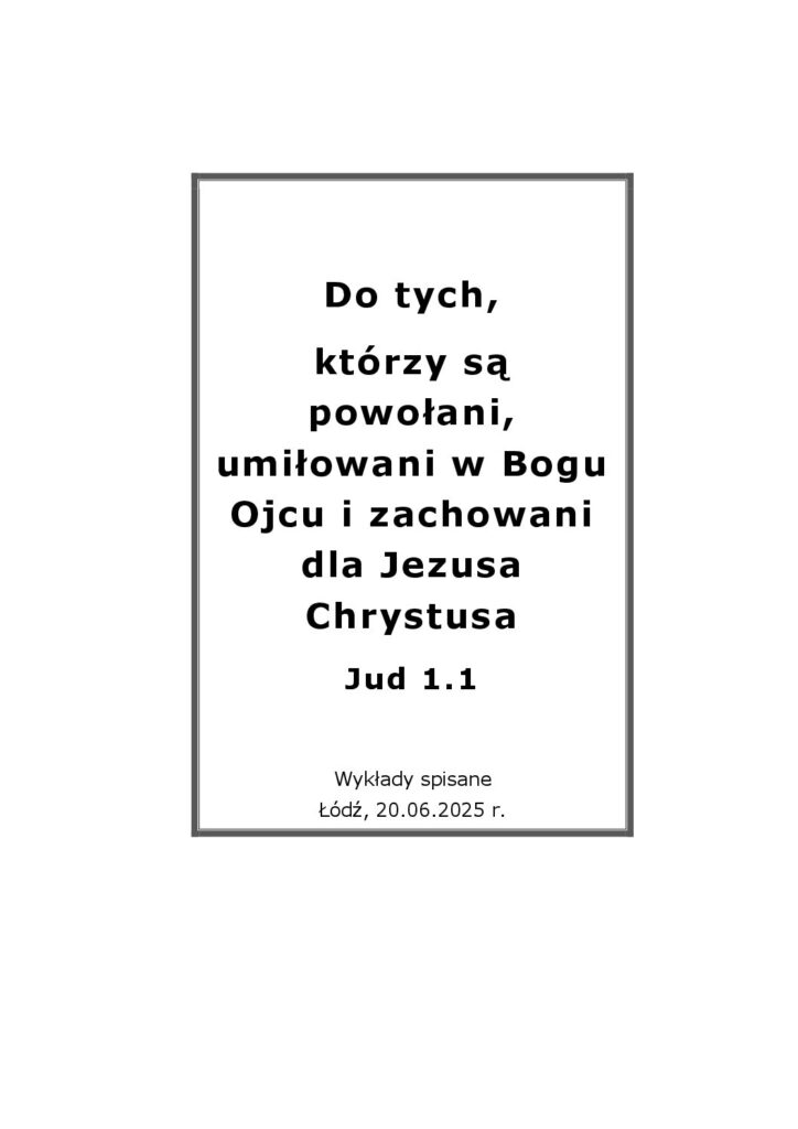 Do tych, którzy są powołani, umiłowani w Bogu Ojcu i zachowani dla Jezusa Chrystusa Jud 1.1 – Łódź 20.06.2025