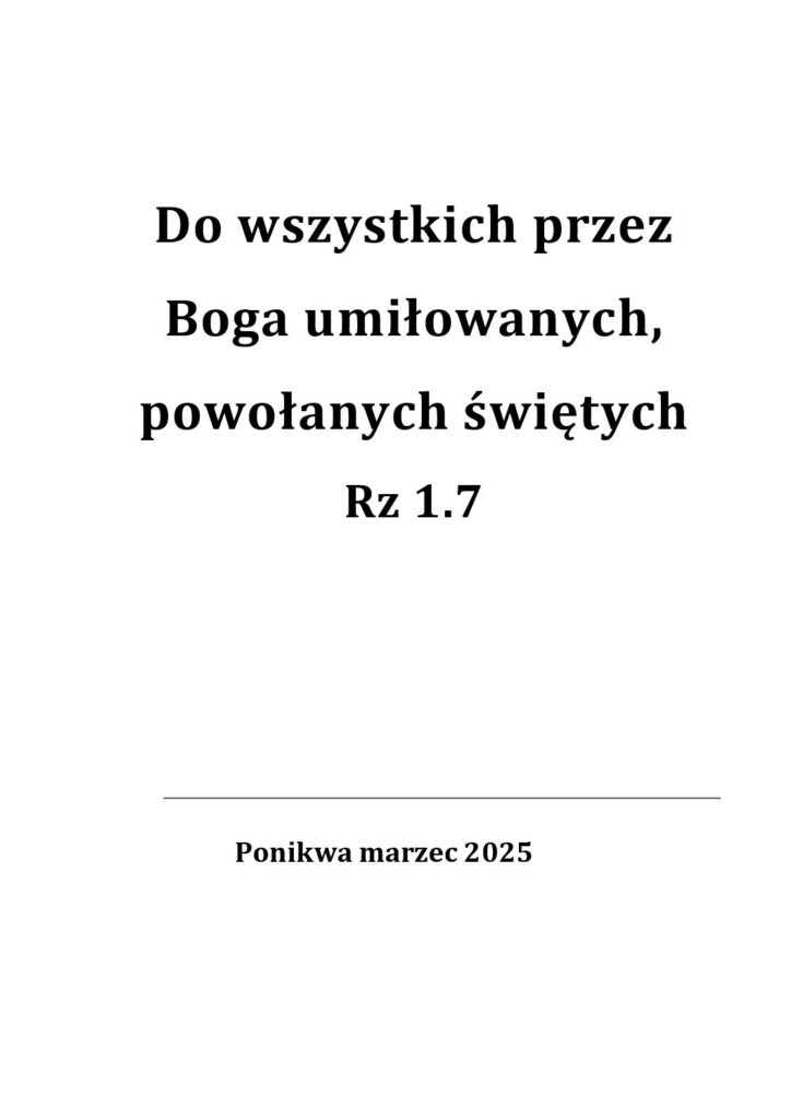 Do wszystkich przez Boga umiłowanych, powołanych świętych Rz 1.7 – Do wszystkich przez Boga umiłowanych, powołanych świętych Rz 1.7 – Ponikwa marzec 2025
