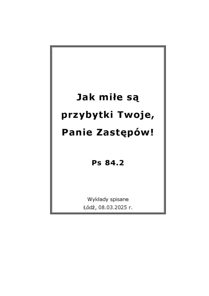 Jak miłe są przybytki Twoje, Panie Zastępów! – Łódź, 08.03.2025 r.