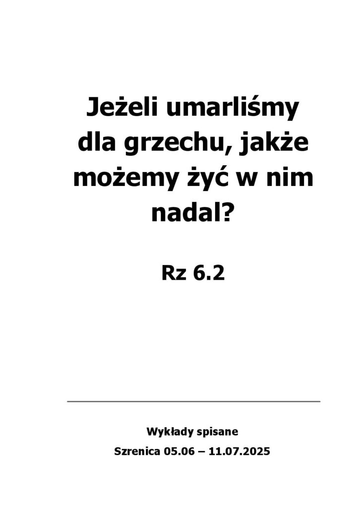 „Jeżeli umarliśmy dla grzechu, jakże możemy żyć w nim nadal?” Rz 6.2