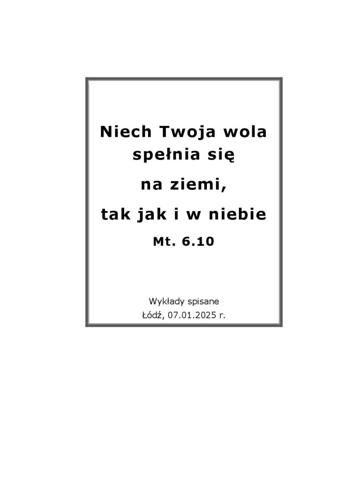 Niech Twoja wola spełnia się na ziemi, tak jak i w niebie Mt. 6.10 – Łódź, 07.01.2025 r.