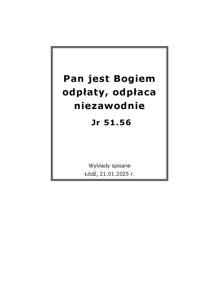 Pan jest Bogiem odpłaty, odpłaca niezawodnie Jr 51.56 – Łódź, 21.01.2025 r.