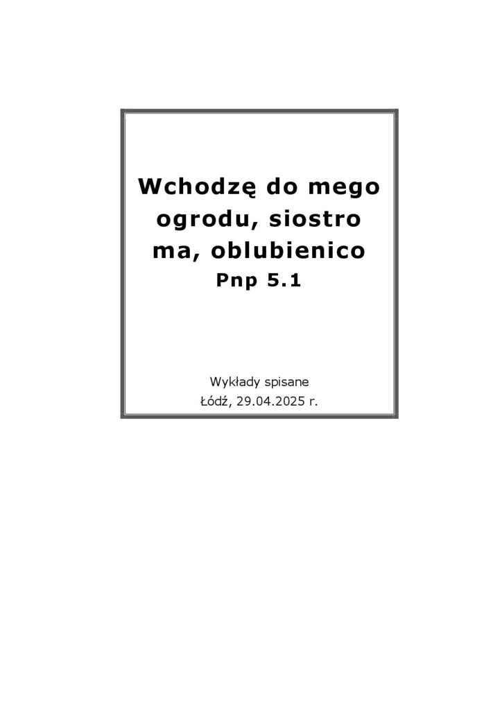 Wchodzę do mego ogrodu, siostro ma, oblubienico Pnp 5.1 – 29.04.2025