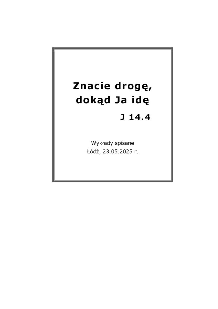 „Znacie drogę, dokąd Ja idę.” J 14.4